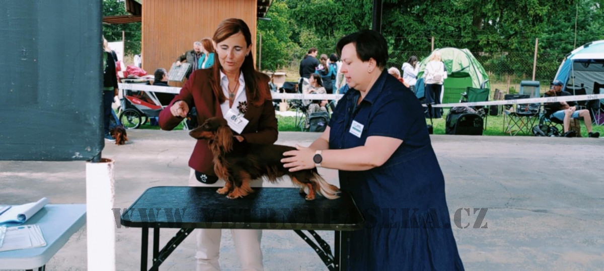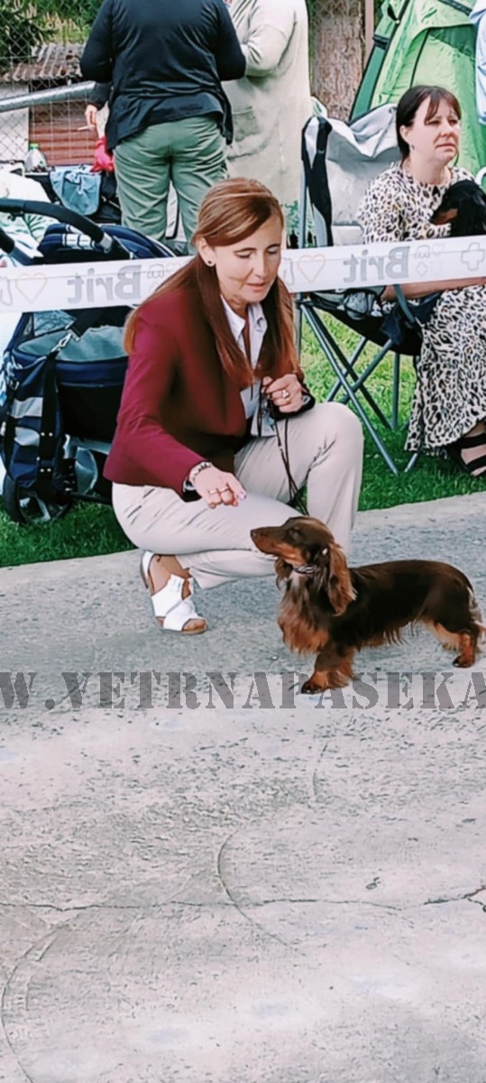 Majitelé jezevčíčka ENDYHO přijeli ukázat, jak se činí na výstavách a zatím stále sbírá známku výborná. Je velmi miloučký a hrál si s maminkou Capetkou. Děkujeme moc za návštěvu! Přejeme do dalších výstav hodně štěstí!