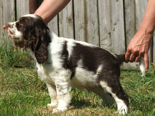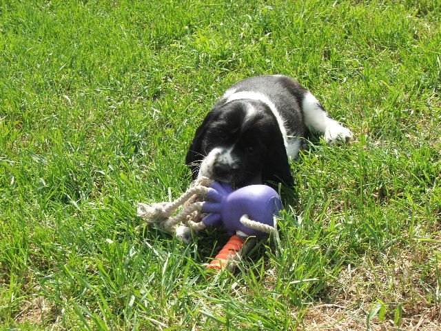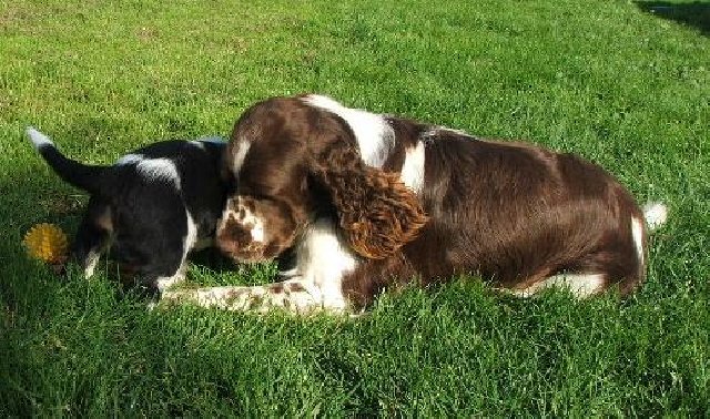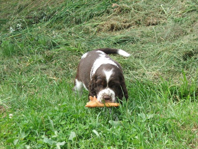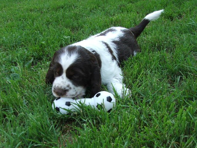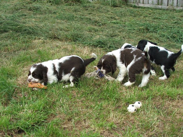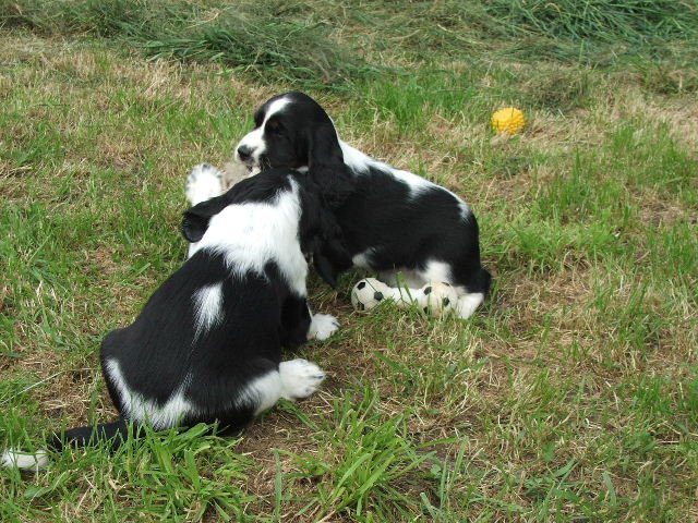 Nové fotky špringřích štěňátek - pokusy o postoje č. 2 a hry venku.