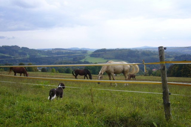 Fário "Fárínek" se má čile k světu a určitě nezůstává pozadu za svými setřičkami. Už začíná aportovat a je v učení velmi šikovný. Sám se snaží prohledávat různá křovíčka a remízky. Nebojí se ani koní. Je trošku svůj, ale páníček to s ním skvěle zvládá.