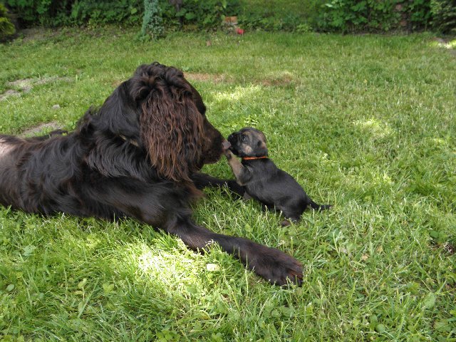 Jak jsme již informovali, CHRIS z Větrné paseky - Meďan,(Chvalka z Chlumeckého polesí x Atos z Neživy) složil zkoušky vloh. Máme pár foteček ze zkoušek. V rodině Médi jsou i další pejsci - manželský pár border teriérů, kteří zrovna mají štěňata. Méďa je zbožňuje a opatruje, což je patrné na fotkách.