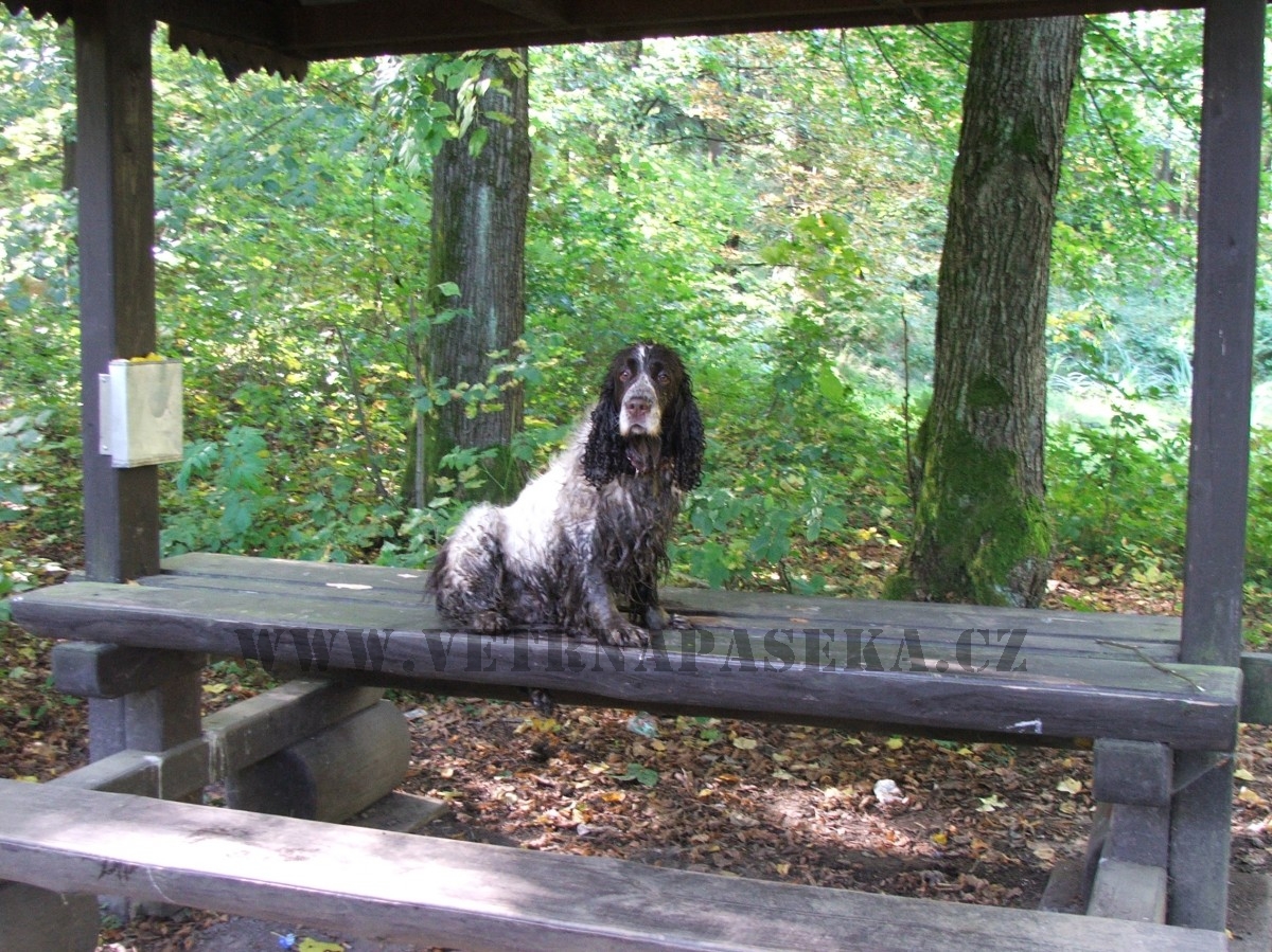 Výcvikový den 6.10.2013, špringr Hubert z Větrné paseky, jezevčice Hany ze Zbynova, špringra Izabela z Větrné paseky a jezečice Gira od Náplavky. Výcvikový den 29.9.2013 - Borča, Izabela, Hubert z Větrné paseky a jagoška Ebi od Bílínského pramene s páníčkem Romanem. Borča z Větrné paseky předváděla, jak se koupat v bahnitém terénu....a přijít až za deset minut....