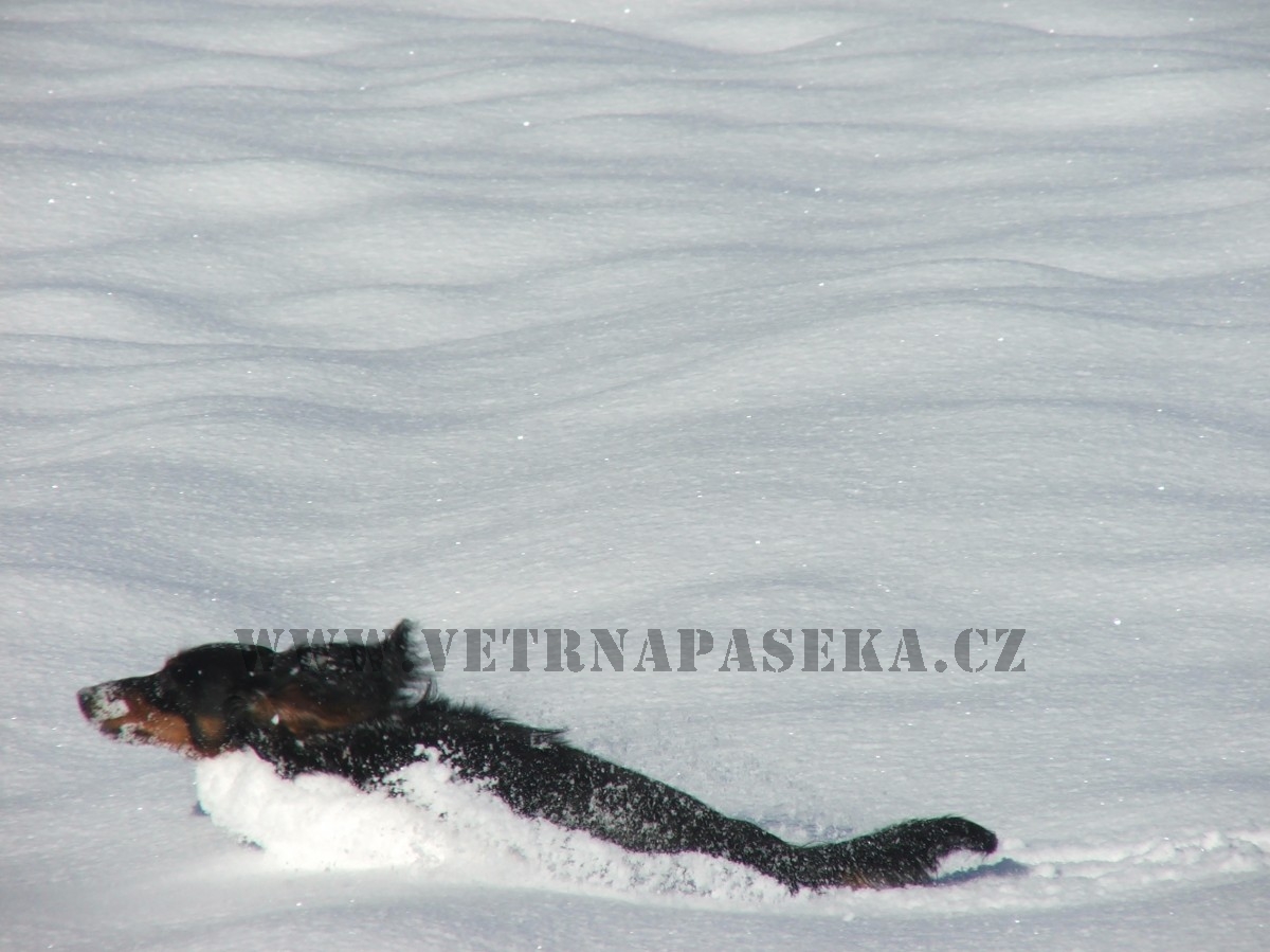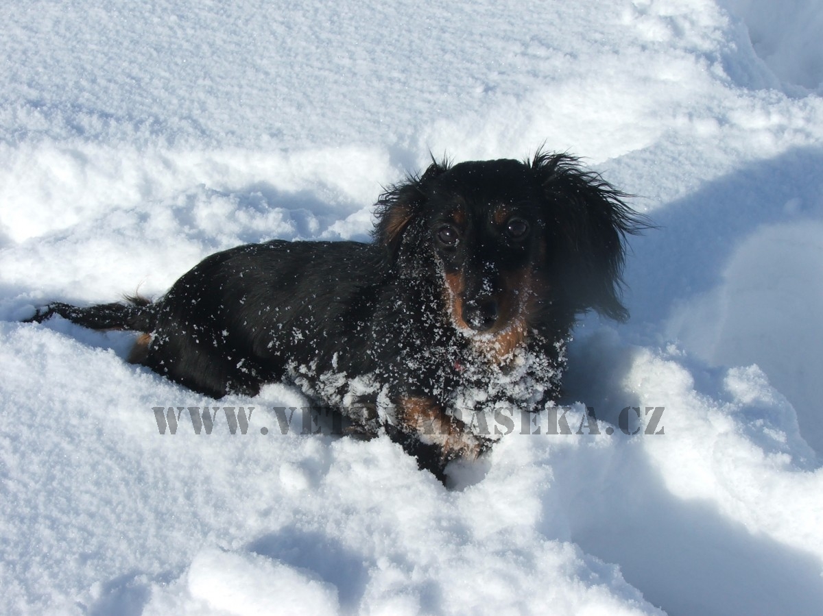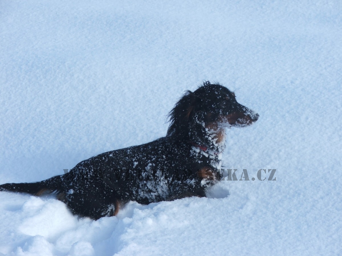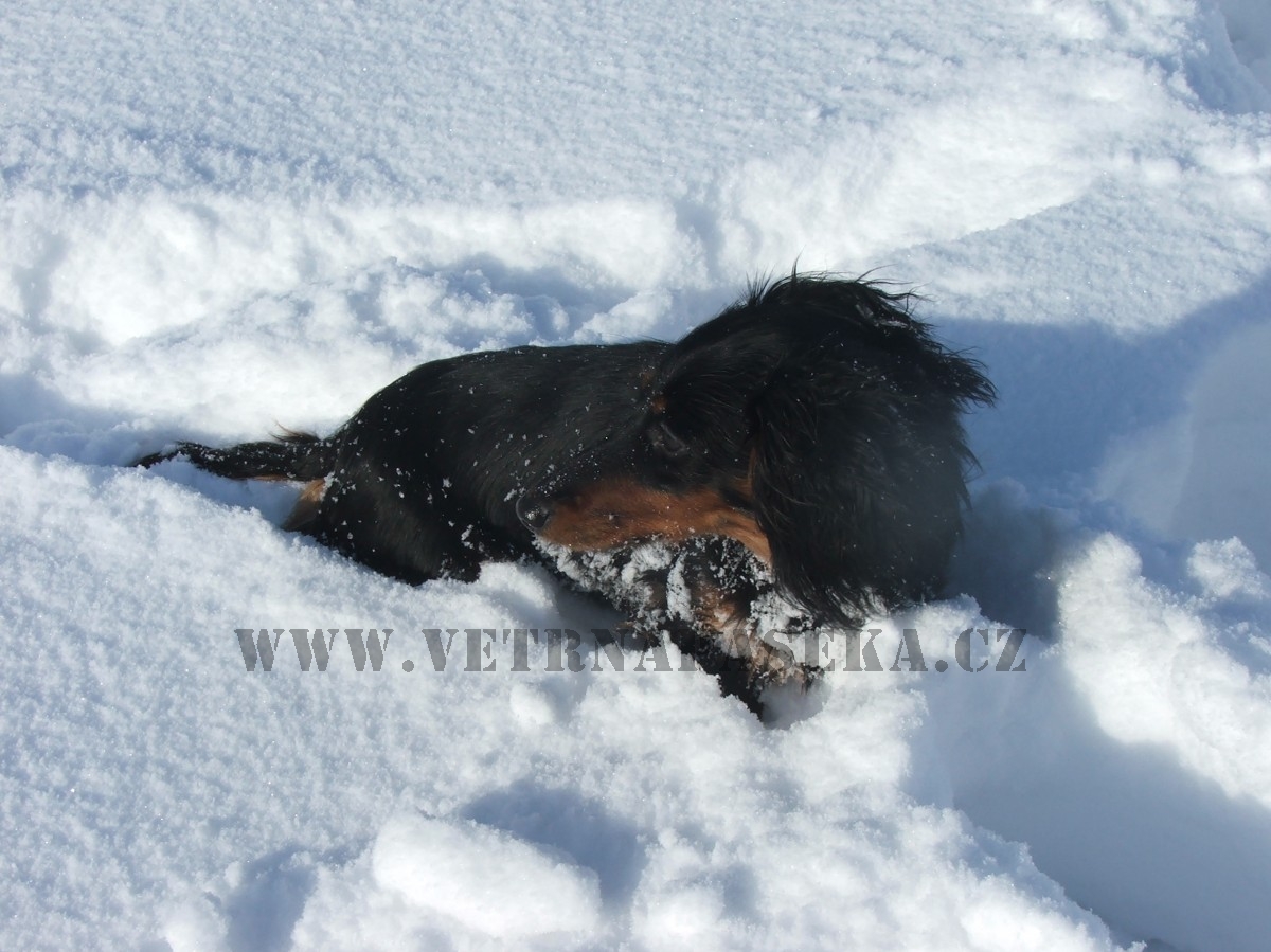 Weguška a sníh. Jééé, snížek! Nevěděla jsem, že se dá ve sněhu i plavat! Uf, už toho mám v tom sněhu dost. Už nejdu plavat, fakt ne...