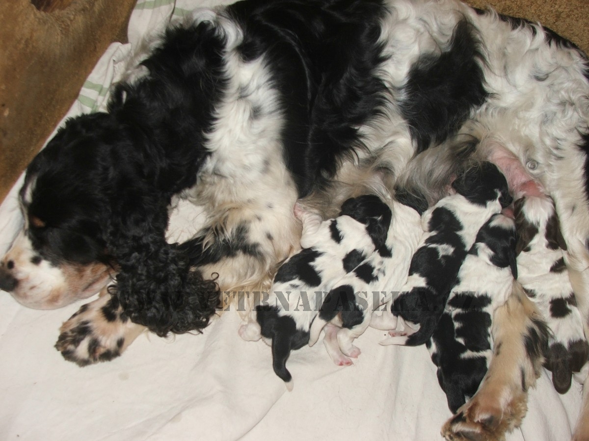 Diana - Mompy 3.4. přivedla na svět pět krásných, kulatých štěňátek!!! Dva pejsky, jeden černobílý, druhý hnědobílý a tři fenečky. Všechny fenečky jsou černobílé a jedna je s pálením!