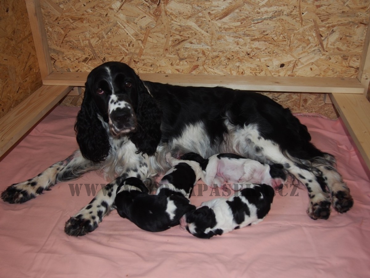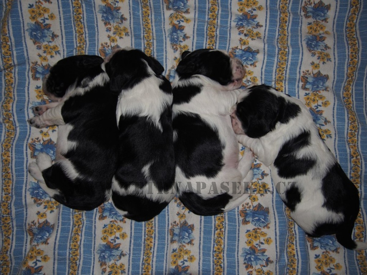 V CHS od Lesní paní se Niké z Větrné paseky narodila 8.9. krásná čtyři černobílá štěňátka! Niké je šikula a společně se strejdou Hubertem se o štěňátka starají. Ještě je volný jeden krásný pejsek!