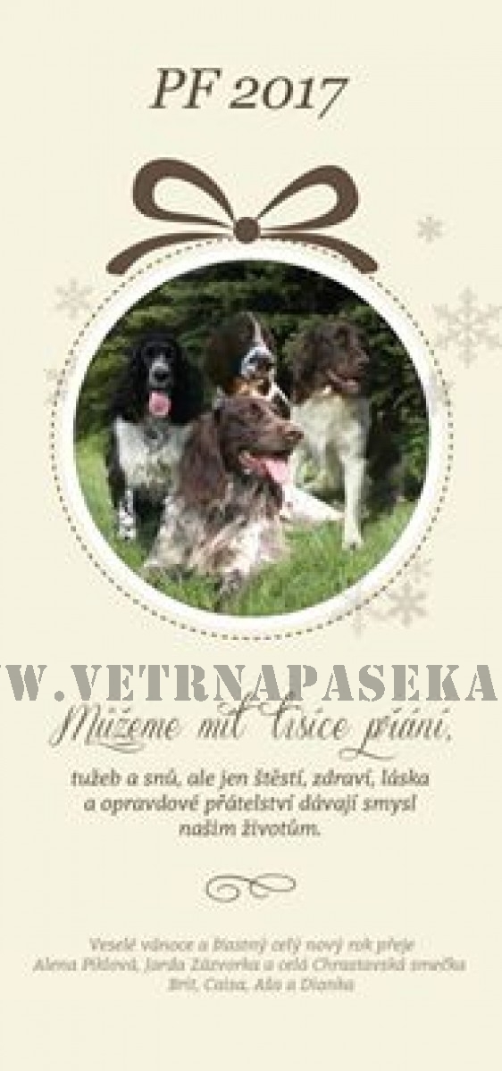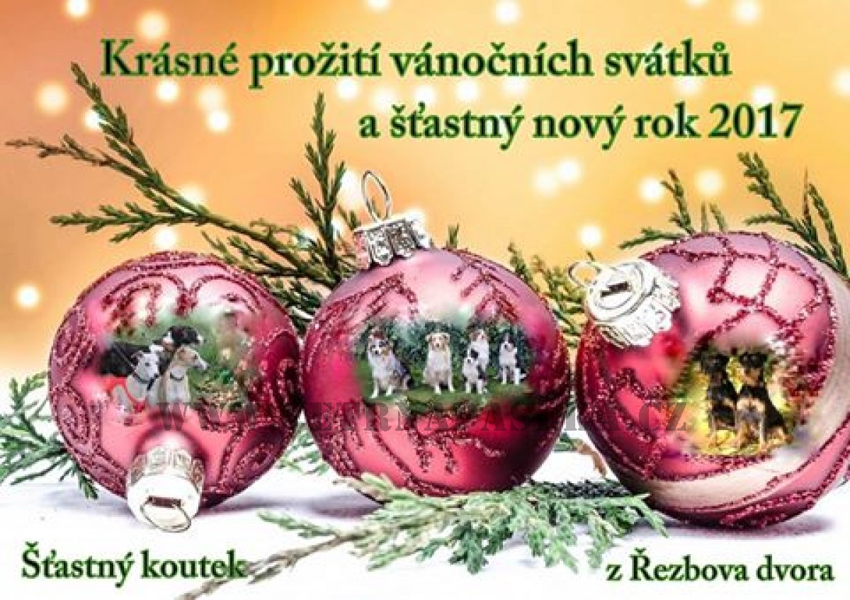 Přejeme Vám všem krásně prožité chvíle vánoční, pohodu v duši a na srdci. Do nového roku 2017 pak hodně zdraví, hodně pracovních a životních úspěchů. Našim pejskům pak spokojený psí život, naplněný naší láskou a dobrůtkami! Děkujeme za Vaše krásná přáníčka, která postupně budeme přikládat.