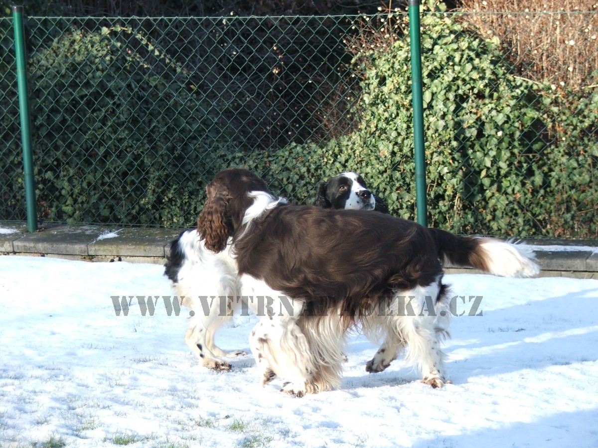 15. ledna jsme se vypravili s Karou z Větrné paseky za pejskem Winterwater Creek´s Daredevilem - Bauníkem. Štěňátka z minulého vrhu se nám moc líbí, jsou velmi pěkně stavěná, jsou šikovná a povahově vyrovnaná. Proto jsme se rozhodli jet za Bauníkem znovu. Bauník je ohromný sympaťák a jeho kukuč je prostě nenahraditelný! Však naše Reisha má kukuč naprosto stejný!