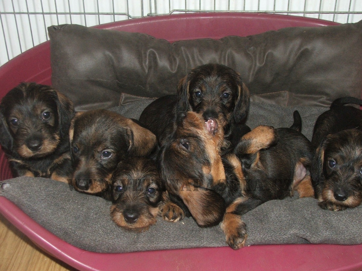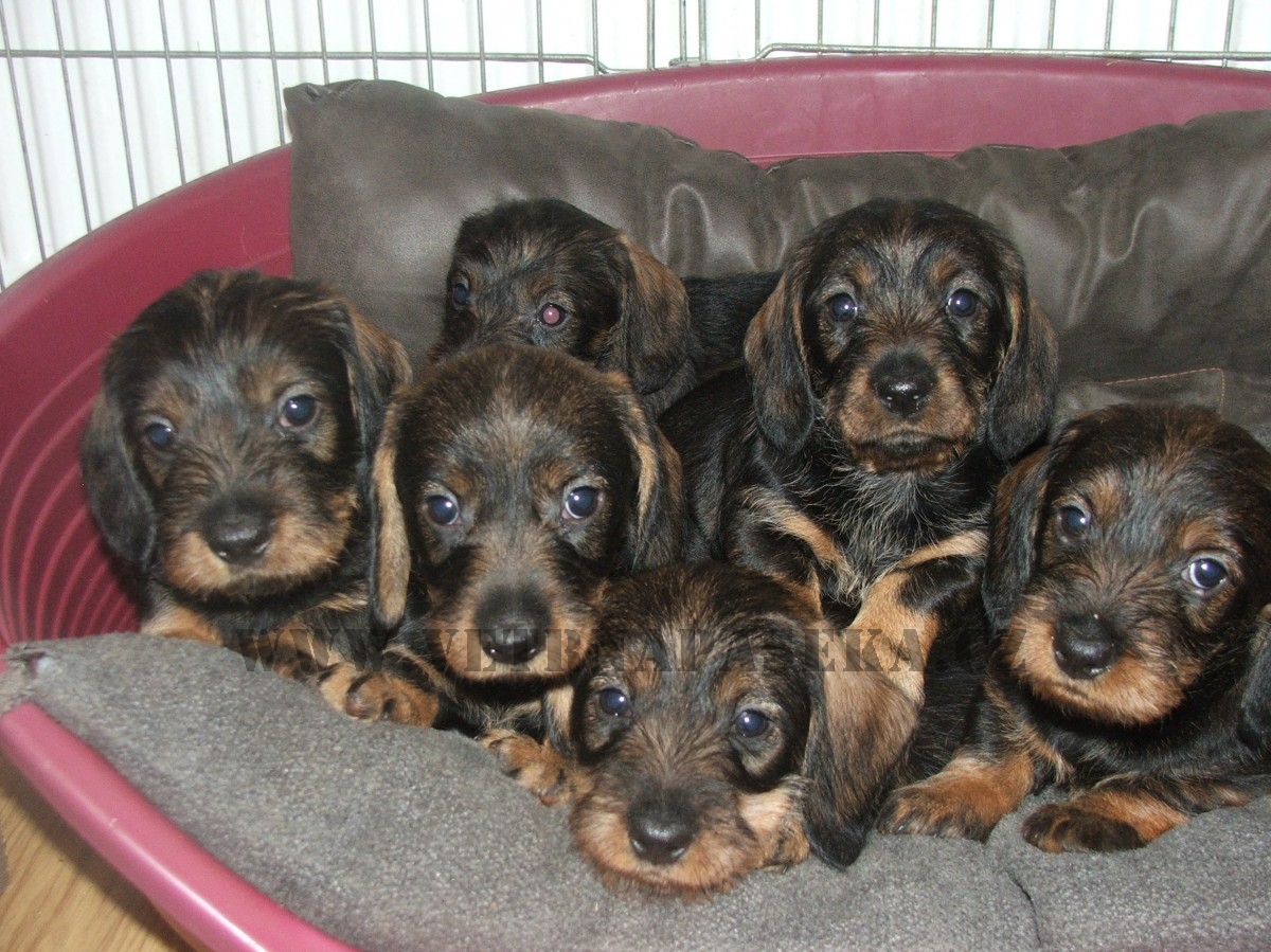 Nové foto štěňátek jezevčíků drsnosrstých.
