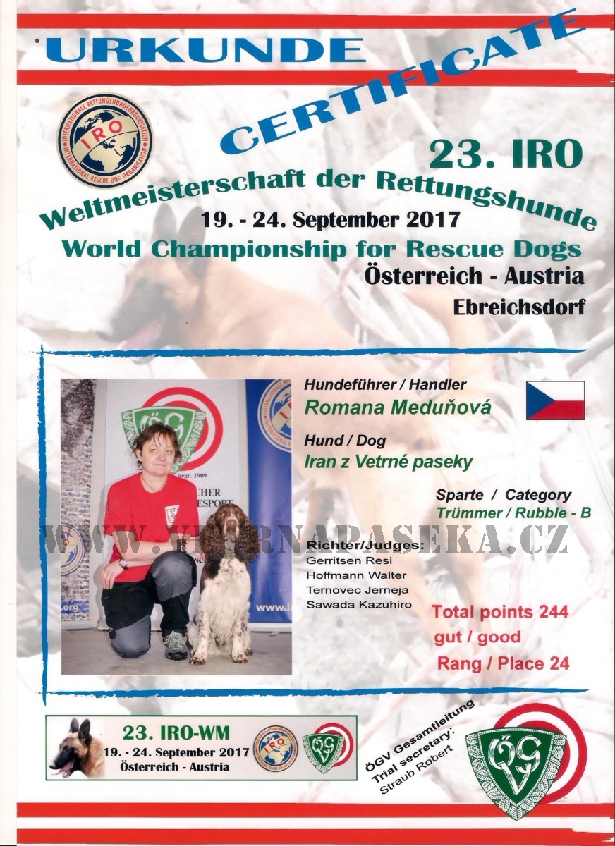 Nechce se věřit zprávě, když odejde starší pes - fenka EBIGEIL z Větrné paseky, která odešla do věčných psích lovišť 13.5., je nám to moc líto. Ale vůbec se nám nechtělo věřit, když 25.5. musel odejít do věčných psích lovišť IRAN z Větrné paseky. Oba tito jedineční špringři, velké osobnosti jezdili na naše srazy a budou chybět nejen svým milovaným páníčkům, ale i nám všem, kdo jsme je velmi dobře znali.