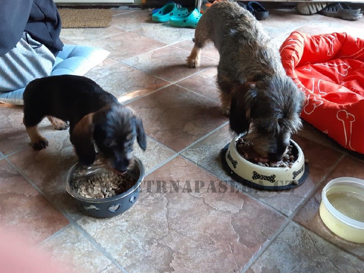 Nové foto štěňátek jezevčíků standard drsnosrstých z nových domovů